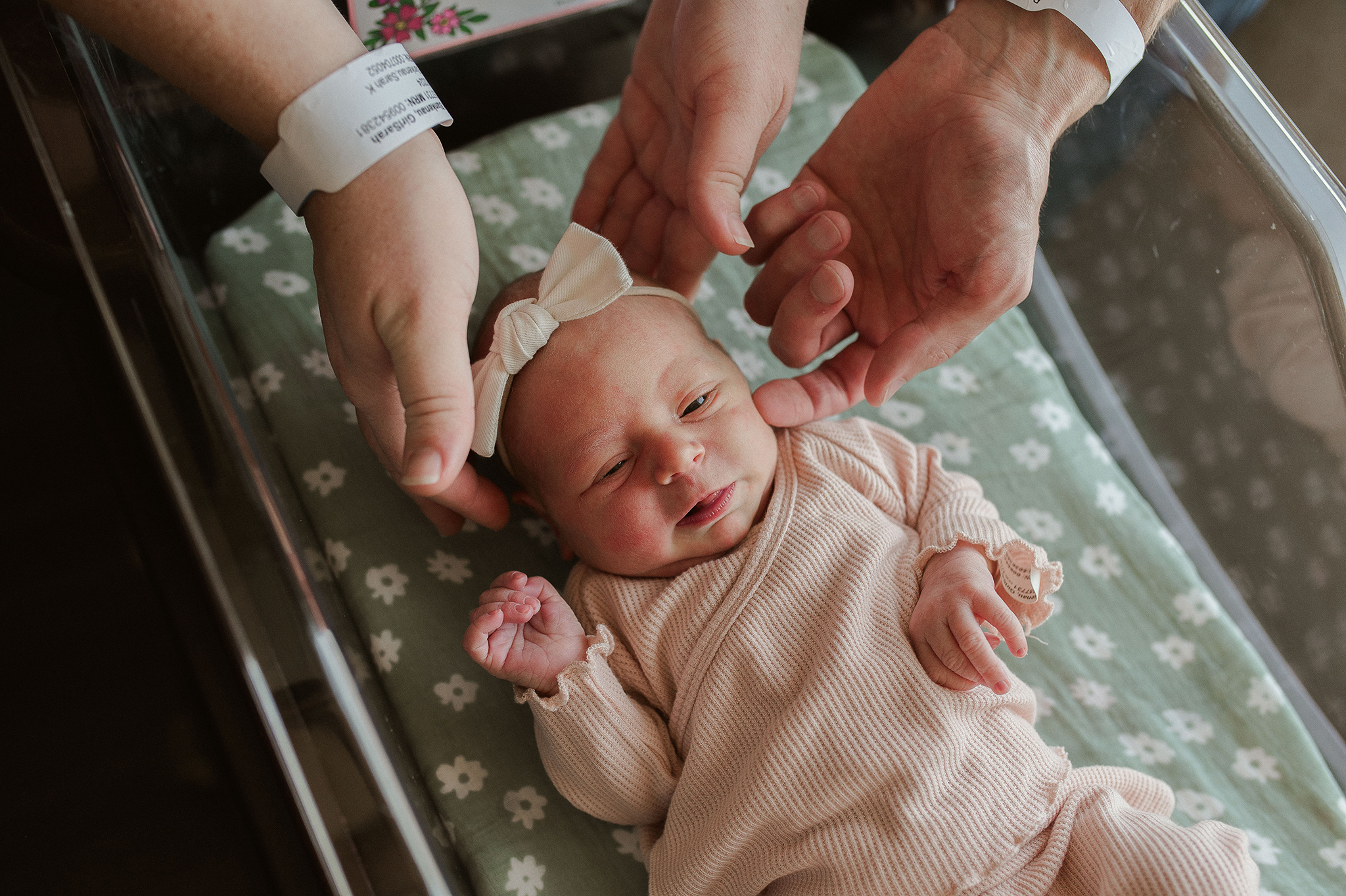 Your baby will grow so fast! Even in those first couple weeks you will not believe how much they have changed! These are not your typical in studio newborn sessions or lifestyle newborn photos, which I also provide. These sessions simply capture the gorgeous, genuine candid moments between family and your new baby with minimal posing from me. We will use the hospital supplies as props! The bassinet, the swaddle (unless you provide your own), the little outfit, etc.